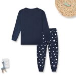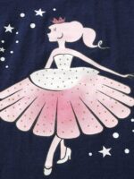 Stuur je kleine meisje naar dromenland in deze betoverende pyjamaset die zowel speels als gezellig is. De marineblauwe top heeft een delicate ballerina-illustratie, versierd met een sprankelende tiara en een fladderende tutu, omgeven door een waterval van sterren. De bijpassende broek is een hemels wonder, bezaaid met witte sterren van verschillende groottes, die lijken op een heldere nachtelijke hemel. Deze set is gemaakt van zachte, zachte stof voor een comfortabele nachtrust en is perfect voor het koesteren van zoete dromen en de verbeeldingskracht van je beginnende danser. Of het nu voor een goede nachtrust of een luie weekendochtend is, deze pyjama combineert comfort en magie, zodat uw kleintje zich de ster van haar eigen sprookje voelt.