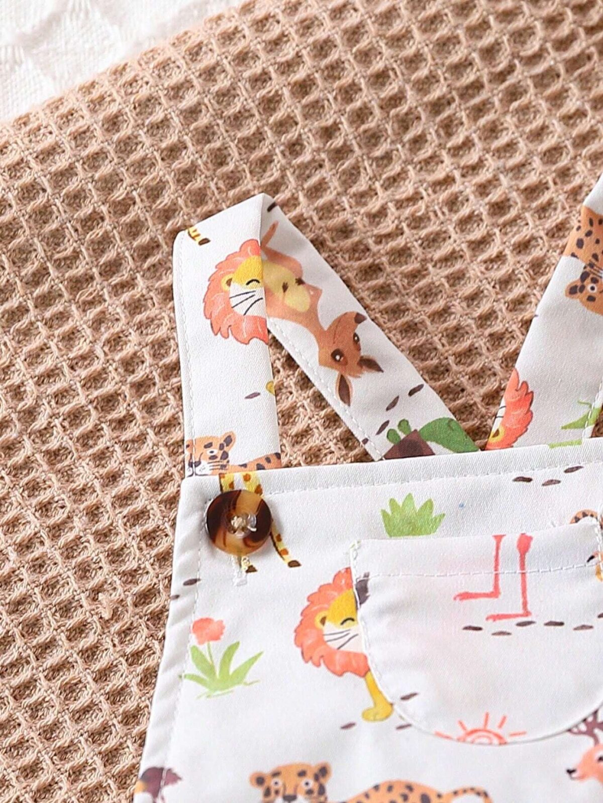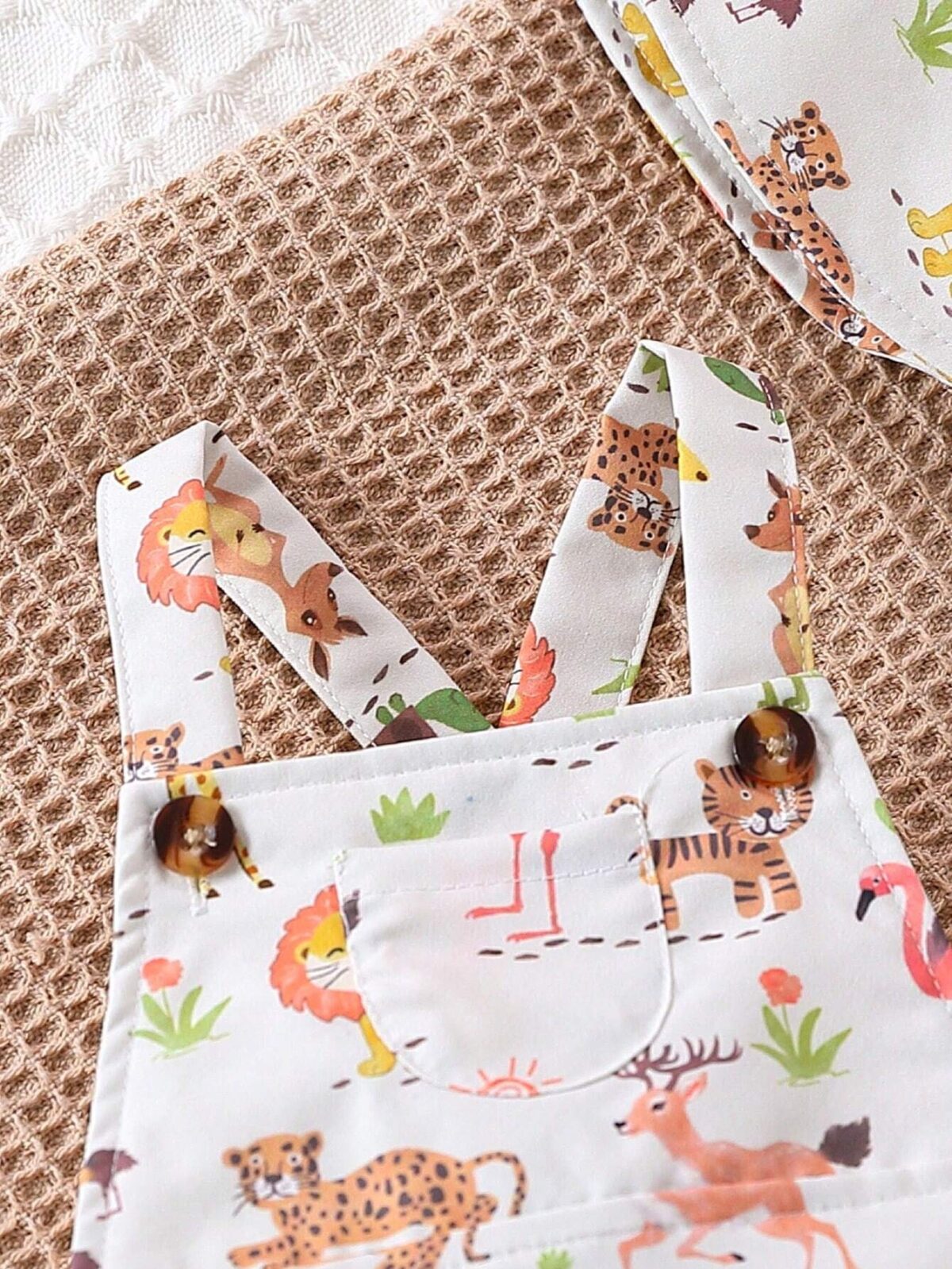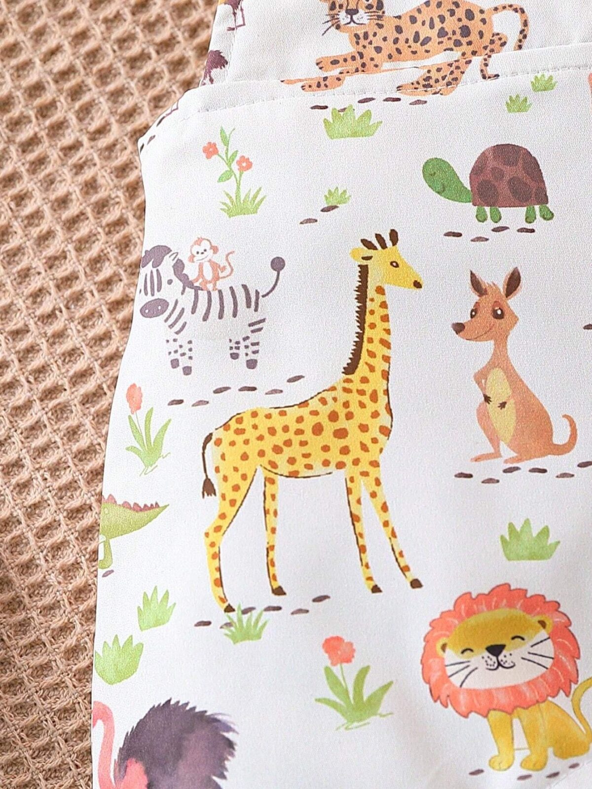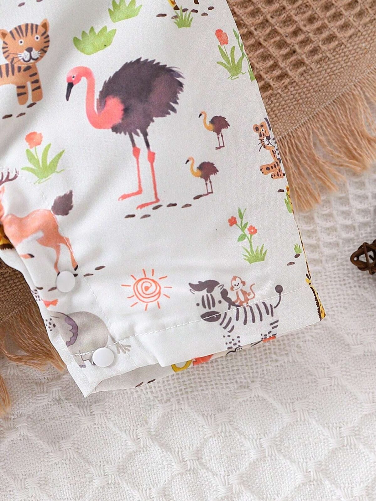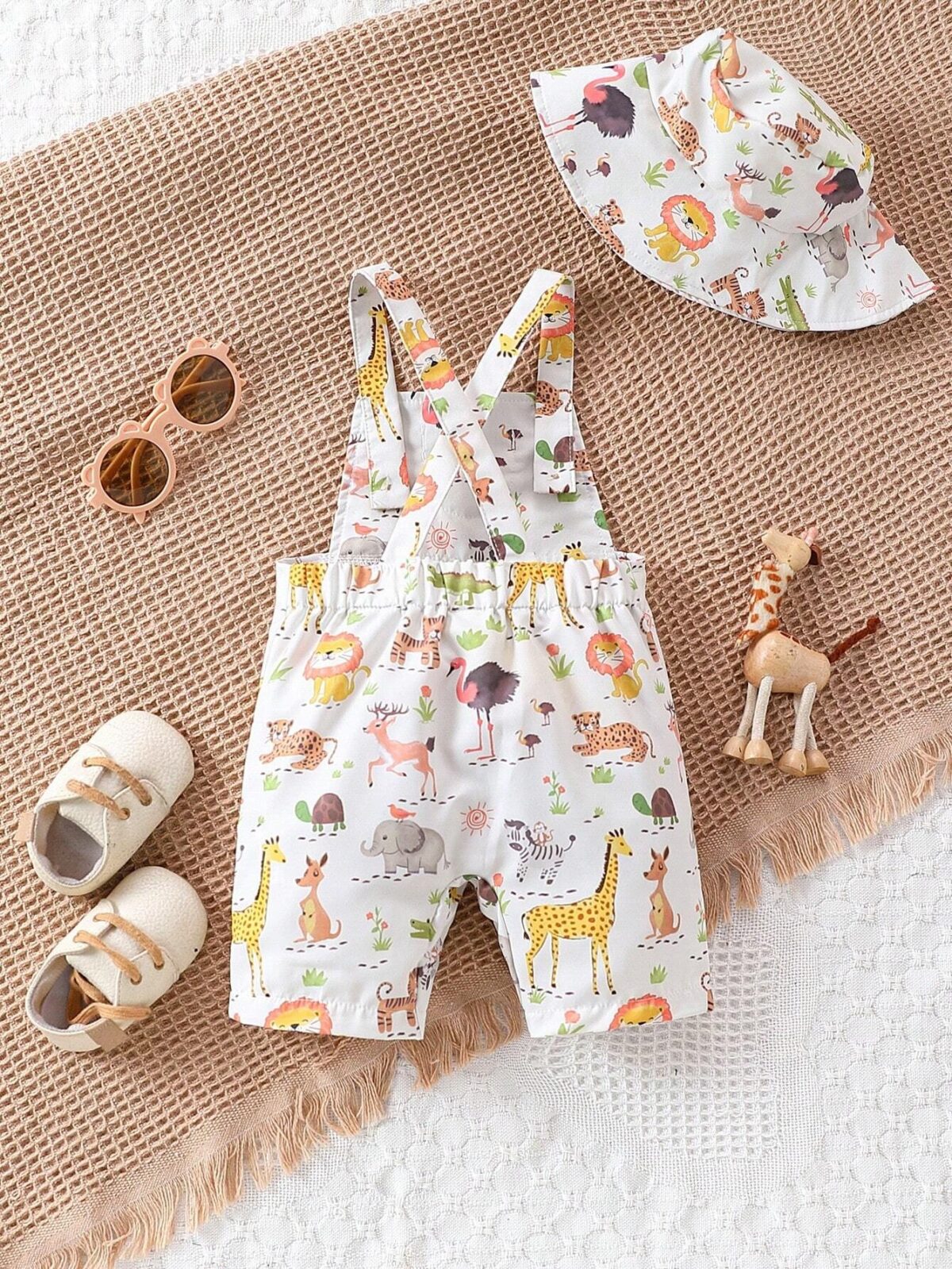 Schattige casual romper met dierenprint en bijpassende hoed, met speelse safari dierenontwerpen, perfect om je baby stijlvol en comfortabel te houden.
