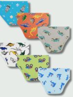 Ga op een dagelijks avontuur met deze dynamische set slips voor peuterjongens, waarbij elk paar een spannend thema heeft dat tot de verbeelding van je kleintje zal spreken. De collectie omvat een helder hemelsblauw paar met stijgende raketten en sterren, een levendig oranje paar met dinosaurussen die rondzwerven tussen de prehistorische flora, een cool grijs paar versierd met bouwvoertuigen, een wit paar met pittige sportafbeeldingen en een verfrissend groen paar met landbouwtractoren . De set wordt compleet gemaakt door een zeeblauw paar met vrolijke haaien die een plons maken. De slip is gemaakt van zachte, ademende stof die zacht is voor de huid en heeft een comfortabele elastische tailleband voor een stevige pasvorm. Deze slips zijn perfect voor actieve peuters en bieden de vrijheid om de hele dag te spelen, terwijl ze dromen van verkenning en ontdekking inspireren.