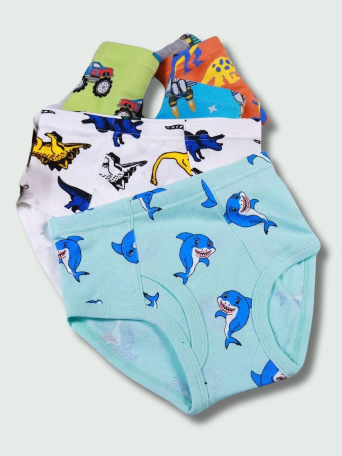 Ga op een dagelijks avontuur met deze dynamische set slips voor peuterjongens, waarbij elk paar een spannend thema heeft dat tot de verbeelding van je kleintje zal spreken. De collectie omvat een helder hemelsblauw paar met stijgende raketten en sterren, een levendig oranje paar met dinosaurussen die rondzwerven tussen de prehistorische flora, een cool grijs paar versierd met bouwvoertuigen, een wit paar met pittige sportafbeeldingen en een verfrissend groen paar met landbouwtractoren . De set wordt compleet gemaakt door een zeeblauw paar met vrolijke haaien die een plons maken. De slip is gemaakt van zachte, ademende stof die zacht is voor de huid en heeft een comfortabele elastische tailleband voor een stevige pasvorm. Deze slips zijn perfect voor actieve peuters en bieden de vrijheid om de hele dag te spelen, terwijl ze dromen van verkenning en ontdekking inspireren.