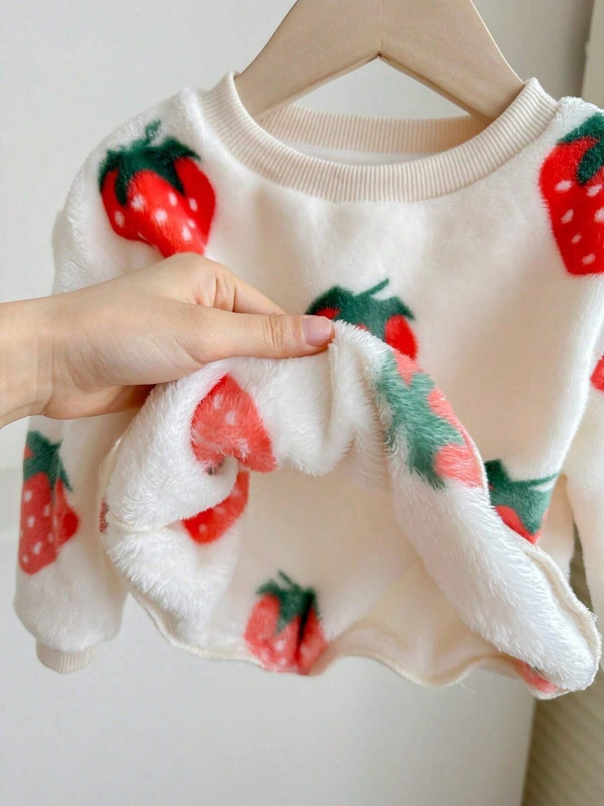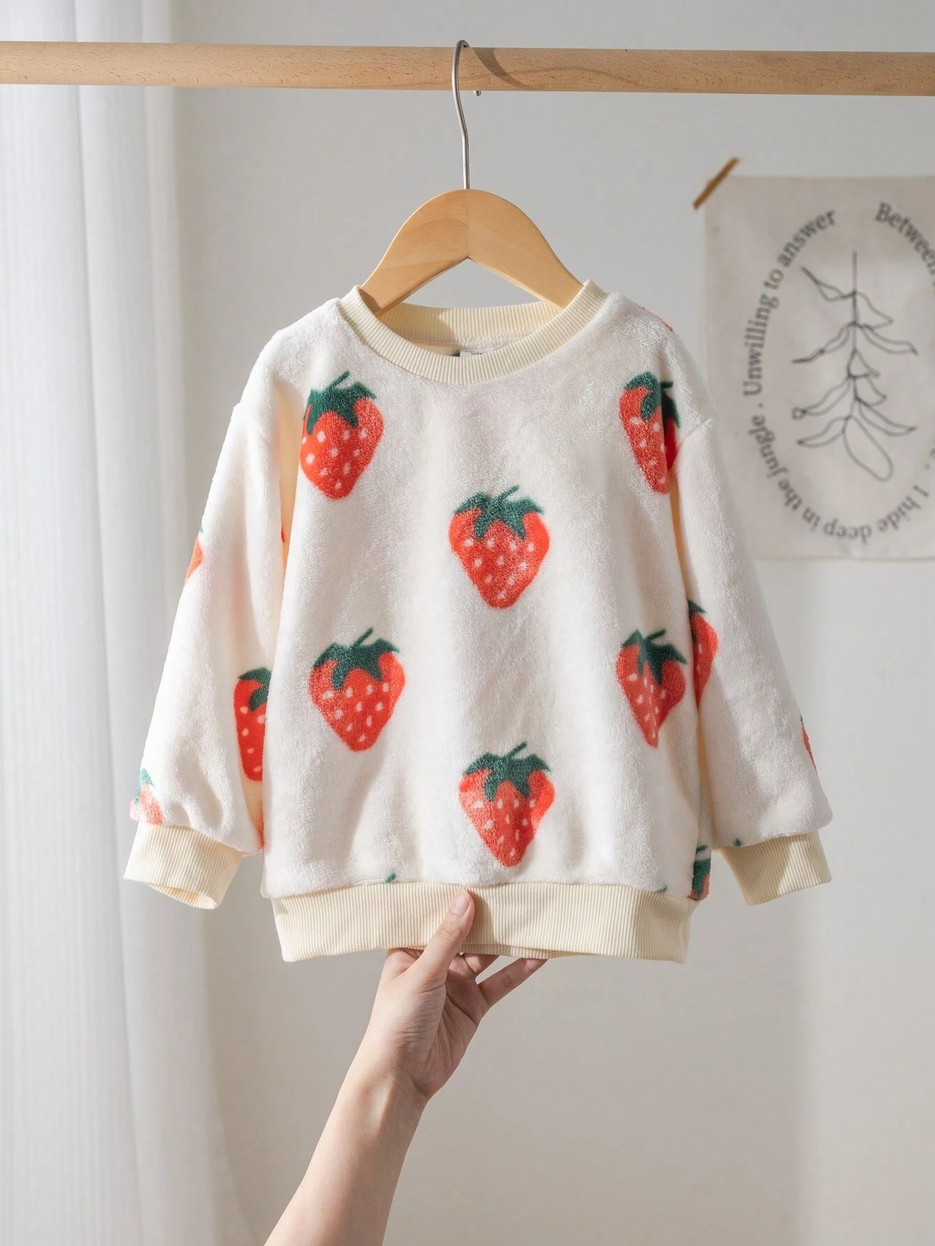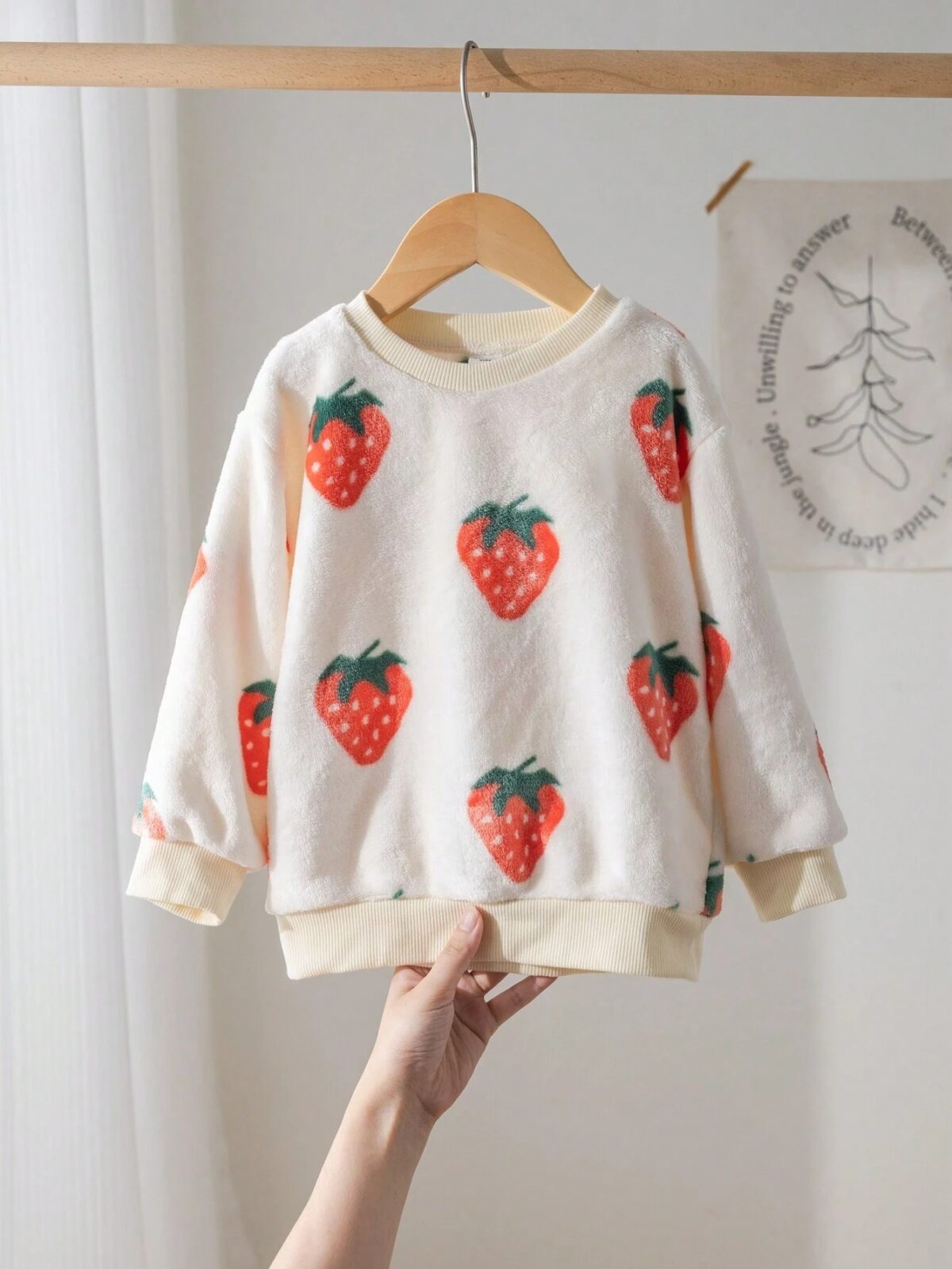 Schattige trui met aardbeienpatroon, zo lief en gezellig, perfect voor je kleintje!