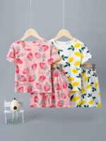Schattige katoenen pyjama set met twee ontwerpen met speelse aardbeien- en citroenprints, perfect voor een gezellige nachtrust.