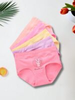 Kleed je kleintje in ultiem comfort en stijl met deze betoverende set onderbroeken voor peutermeisjes, met een lief konijntjesmotief in het midden van elk stuk. Deze collectie bevat vijf paar in een reeks vrolijke pasteltinten: zachtroze, felroze, lavendel, zonnig geel en zacht koraal. Elke onderbroek is gemarkeerd met een cirkelvormige konijnenprint en de woorden “Rabbit kiss” voor een extra vleugje eigenzinnigheid. De zachte, ademende stof zorgt de hele dag voor comfort, terwijl de elastische tailleband zorgt voor een goede pasvorm terwijl je peuter springt en speelt. Deze onderbroek is perfect voor dagelijks gebruik en combineert de zachtheid die uw kind nodig heeft met de schattigheid waar hij of zij dol op zal zijn.