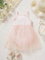 Versier je kleintje in deze lieflijke roze romper, met een tailleband met madeliefjesbloemen en een sprankelende rok van tule, perfect voor elke speciale gelegenheid.