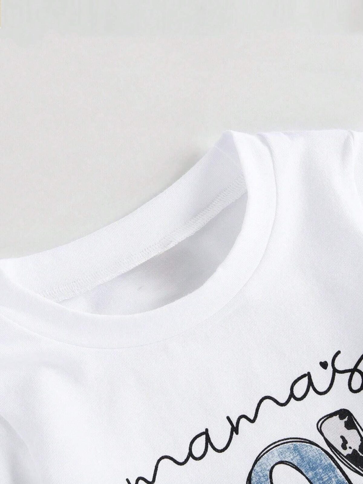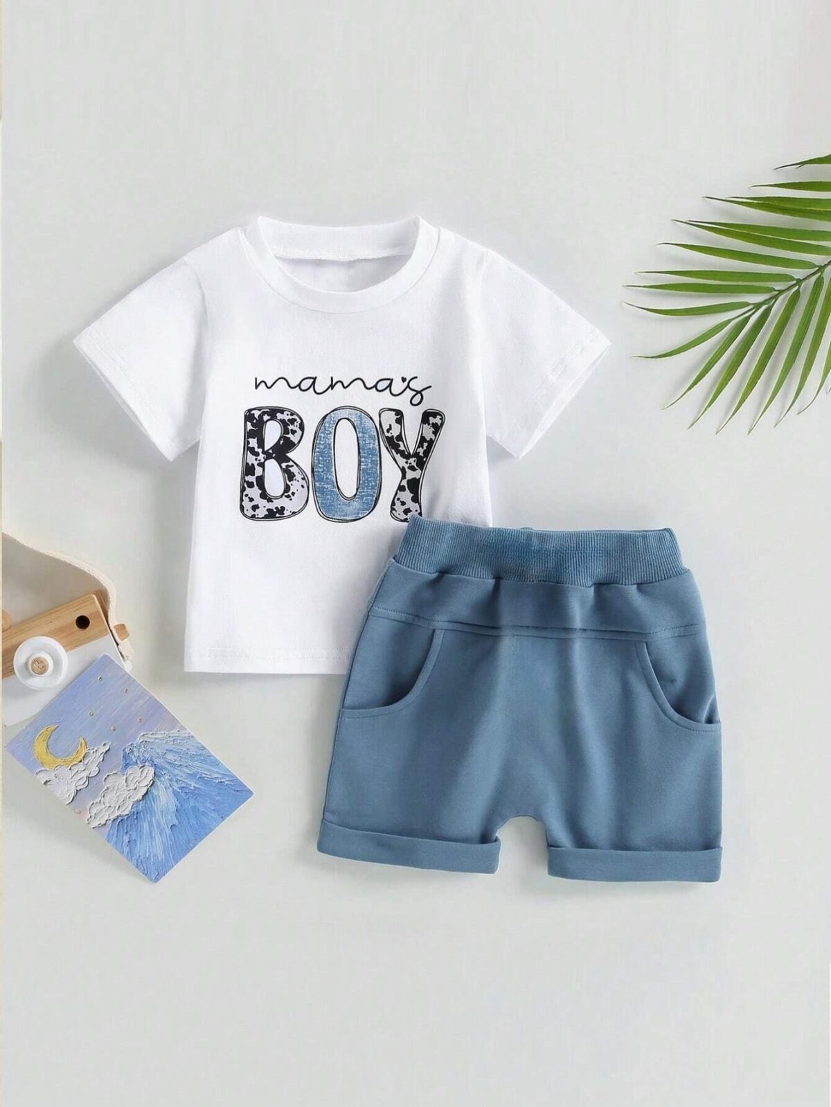 Introduceer je kleine jongen aan de wereld van comfort en stijl met onze Katoenen Set met Korte Mouwen T-shirt en Shorts. Deze heerlijke set bestaat uit een charmant wit T-shirt met de speelse tekst “Mama’s Boy” in gedurfde, leuke letters, wat de zoetheid van je kleintje benadrukt. De bijpassende blauwe shorts zijn ontworpen met een zachte elastische tailleband en handige zijzakken, waardoor ze perfect zijn voor de hele dag draagplezier en spel.