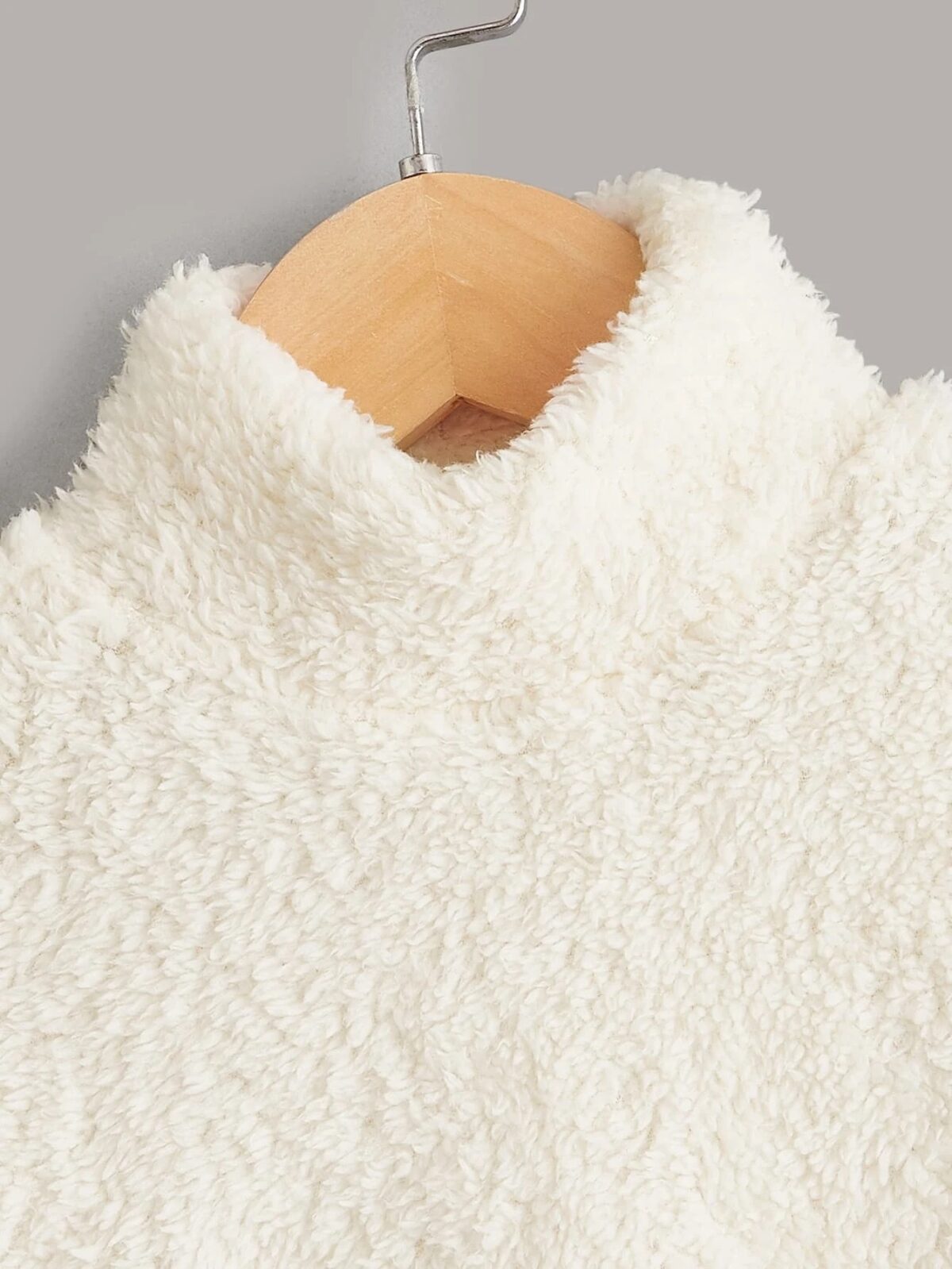 Blijf knus en schattig in deze zachte en pluizige teddytrui met opstaande kraag, perfect voor koude dagen!