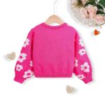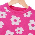 Dit is een levendige fuchsia trui voor peutermeisjes, versierd met een speels wit bloemenpatroon.