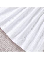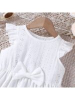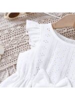 Verhoog de garderobe van je kleintje met deze charmante Uitgeholde strik versierde ruchesjurk. Gemaakt van hoogwaardig, ademend materiaal, zorgt deze jurk voor comfort terwijl het elegantie uitstraalt. Het delicate hollow-out ontwerp voegt een vleugje verfijning toe, waardoor het ideaal is voor bruiloften, verjaardagsfeestjes of elke speciale gelegenheid. De jurk heeft mooie ruches aan de mouwen en een schattige strik aan de taille, wat de schattige en vrouwelijke uitstraling versterkt. De witte kleur geeft het een tijdloze en veelzijdige uitstraling, perfect om te combineren met haar favoriete accessoires. Laat je kind stralen en zich als een prinses voelen in deze prachtige jurk die stijl, comfort en gratie combineert.