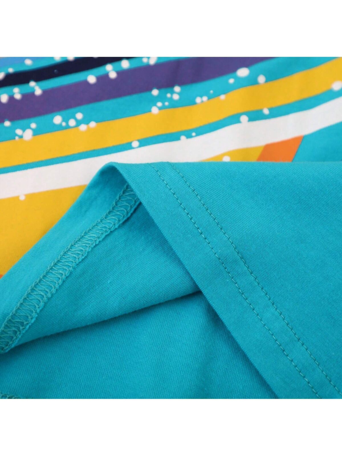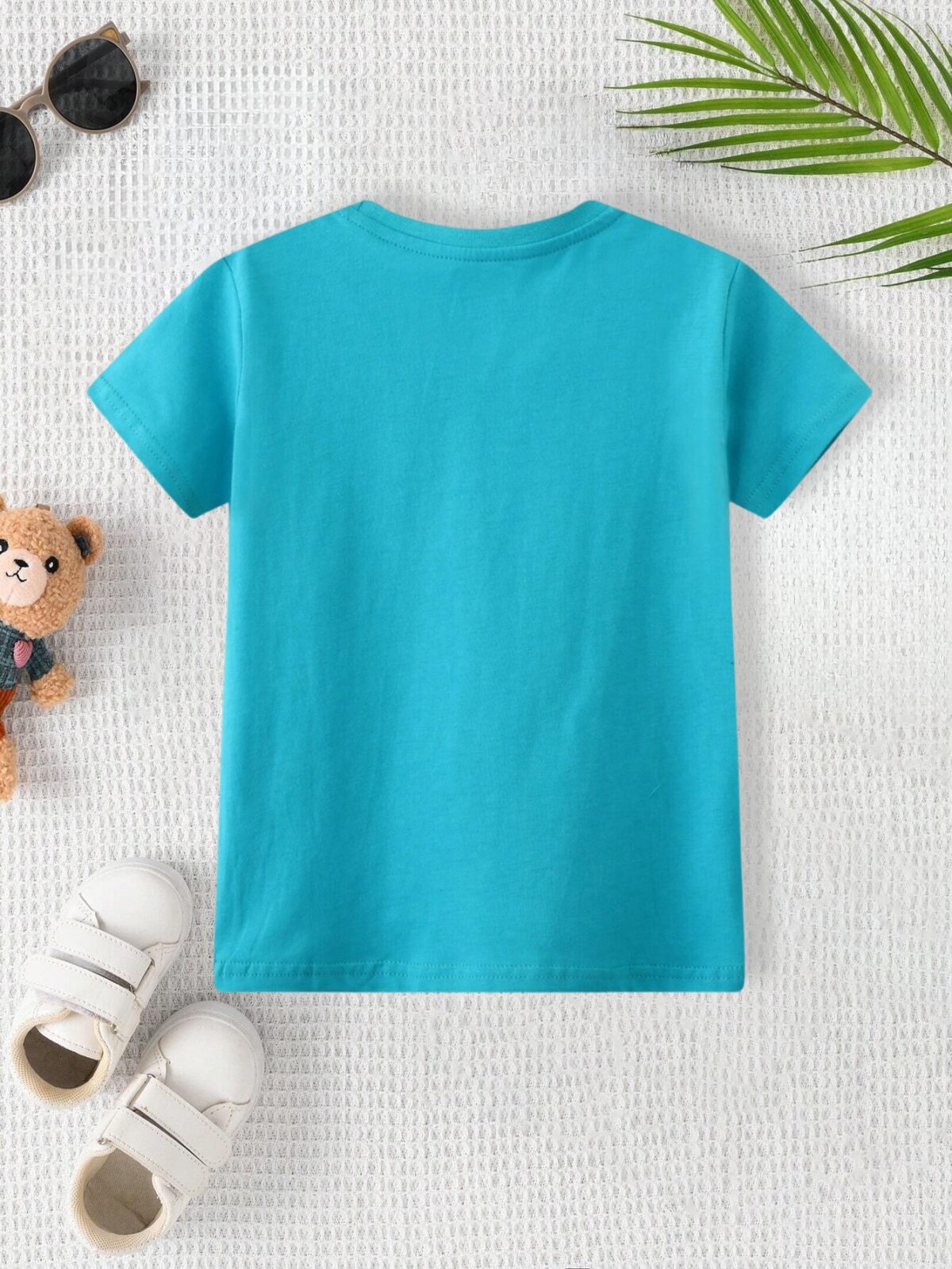 Embark on an interstellar adventure with this eye-catching toddler boy’s cosmic T-shirt. The shirt comes in a bright turquoise hue that evokes the mystery and wonder of the cosmos. Adorning the front is a dynamic space-themed illustration complete with swirling planets in bold colors, a speeding rocket, and a brave little astronaut floating in zero gravity. The playful graphics are designed with vivid colors and sprinkles of stars that seem to shimmer, capturing the vastness and excitement of space exploration. The T-shirt is made from soft, breathable fabric, ensuring your little explorer stays comfortable during his earthly adventures or while gazing up at the stars. This Cosmic T-shirt is perfect for budding astronauts and little dreamers alike, ready to make a statement at the playground or during storytime about the universe.