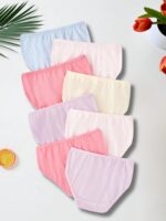 Dive into a magical world with this enchanting set of seven toddler girl’s underpants, each pair blooming with pastel shades and endearing designs. The collection features a menagerie of cute creatures, including a dignified cat, a playful kitten on a moon, a cheerful cow, and a cuddly bear, all designed to spark joy. Each underpant is a canvas of soft color – sky blue, candy pink, lemon cream, lilac, and more, accentuated with fun motifs like stars, rainbows, and hearts. ‘Happy Day’ and ‘Rabbit’ messages add a whimsical touch. These underpants are made with a gentle, stretchable fabric and equipped with a comfortable elastic waistband, ensuring a cozy fit for all-day play. The variety of prints in this set promises a fresh and fun start to each day, perfect for the imaginative spirit of a young child.