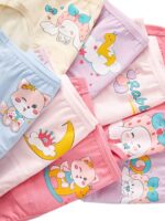 Charming set of pastel-colored toddler girl’s underpants with adorable animal and celestial designs.