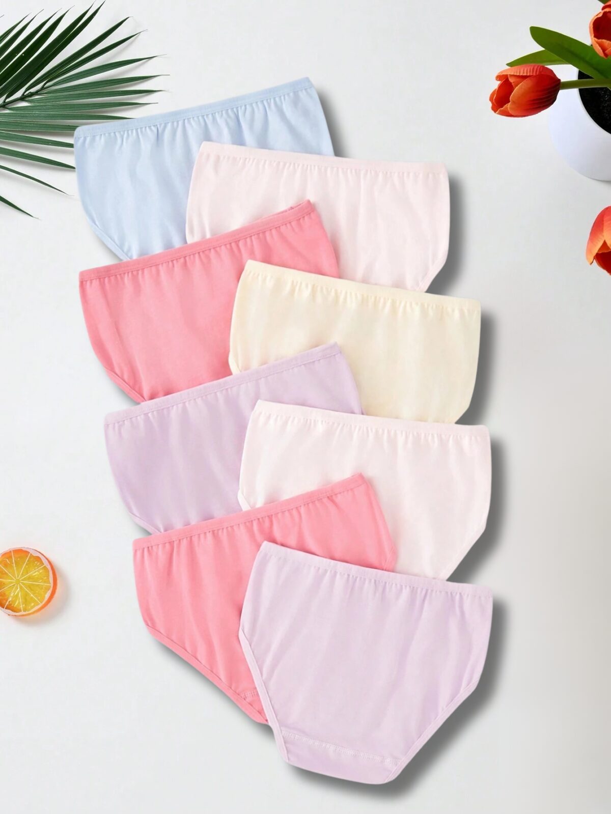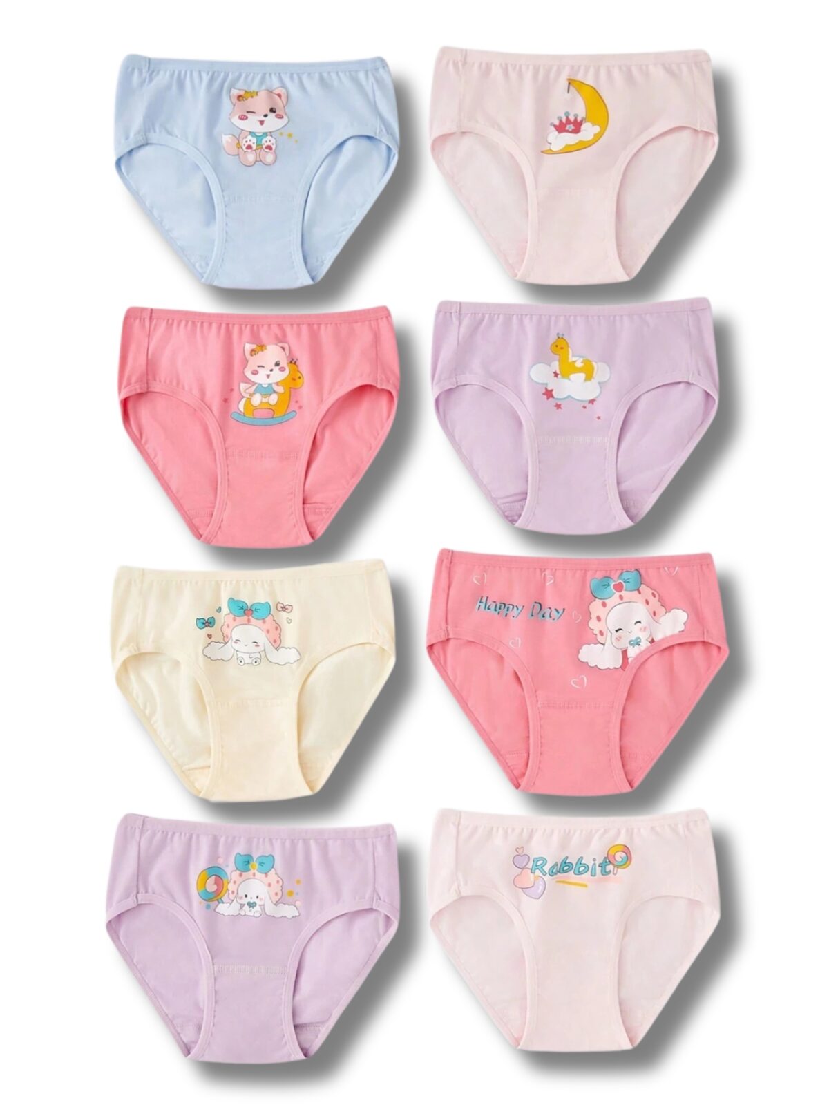 Charming set of pastel-colored toddler girl’s underpants with adorable animal and celestial designs.