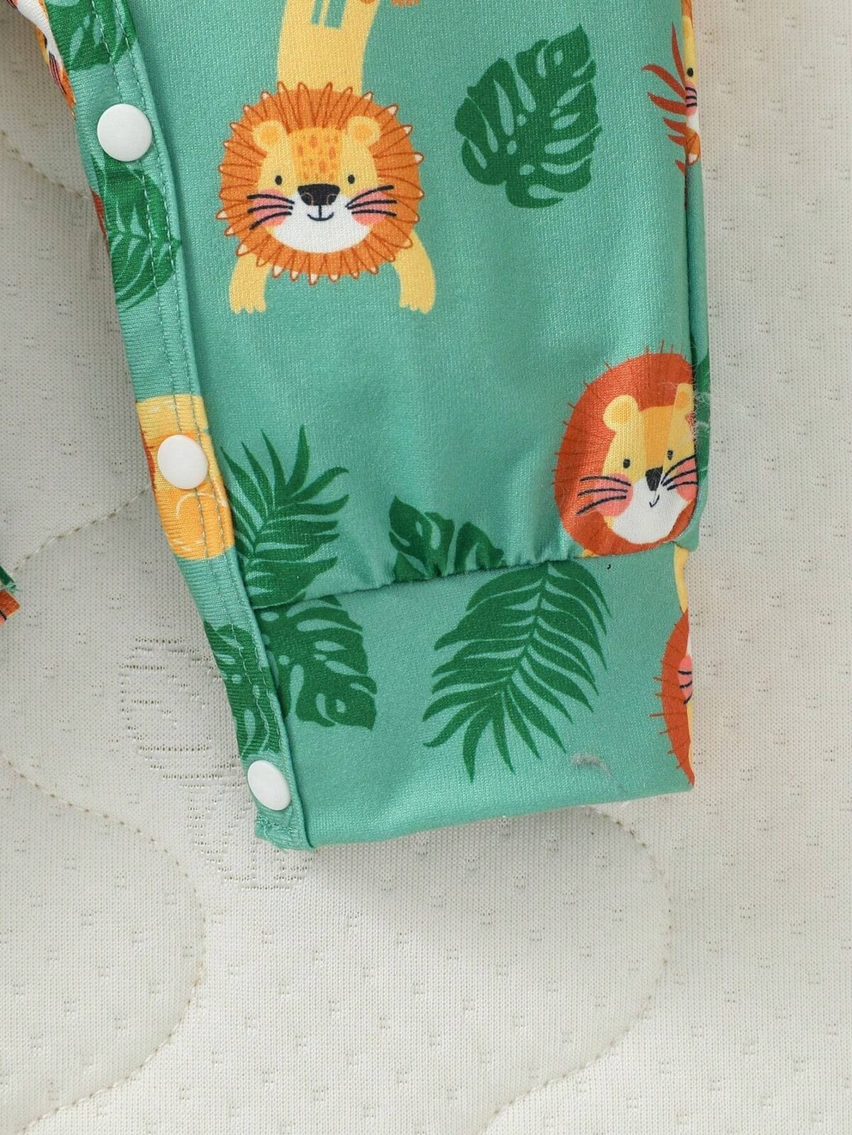 Adorable jumpsuit featuring a cute cartoon animal print, perfect for adding a playful touch to your baby’s wardrobe while keeping them comfortable.