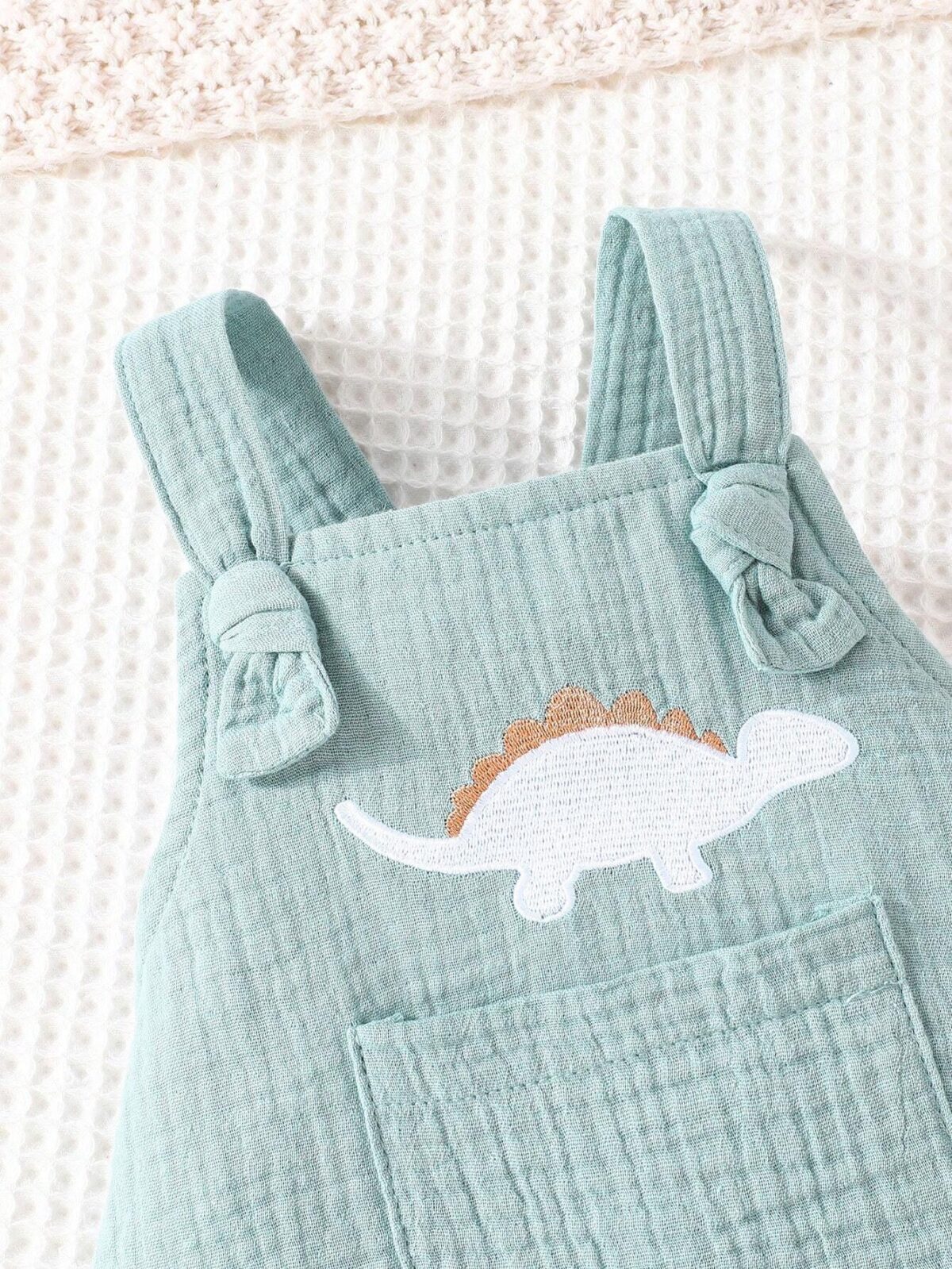 Dinosaur Embroidery Pattern Jumpsuit With Hat