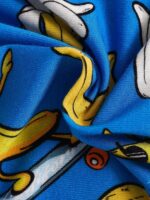Get ready for a burst of fun with this delightful fruit pattern short sleeve and shorts set. This vibrant ensemble features cheerful banana characters skateboarding and having a blast, all set against a bright blue background. The short sleeve top and matching shorts are made from soft, breathable fabric, ensuring your child stays comfortable and cool throughout the day. Perfect for playful adventures and cozy lounging, this set brings a touch of whimsy and joy to your child’s wardrobe. With its eye-catching design and comfortable fit, it’s sure to become a favorite for both you and your little one. Ideal for sunny days, playdates, or simply adding a splash of fun to everyday wear, this fruit pattern set is a must-have for your child’s closet.