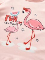 Adorable flamingo print sleep tee and shorts set, perfect for sweet dreams and cozy nights.