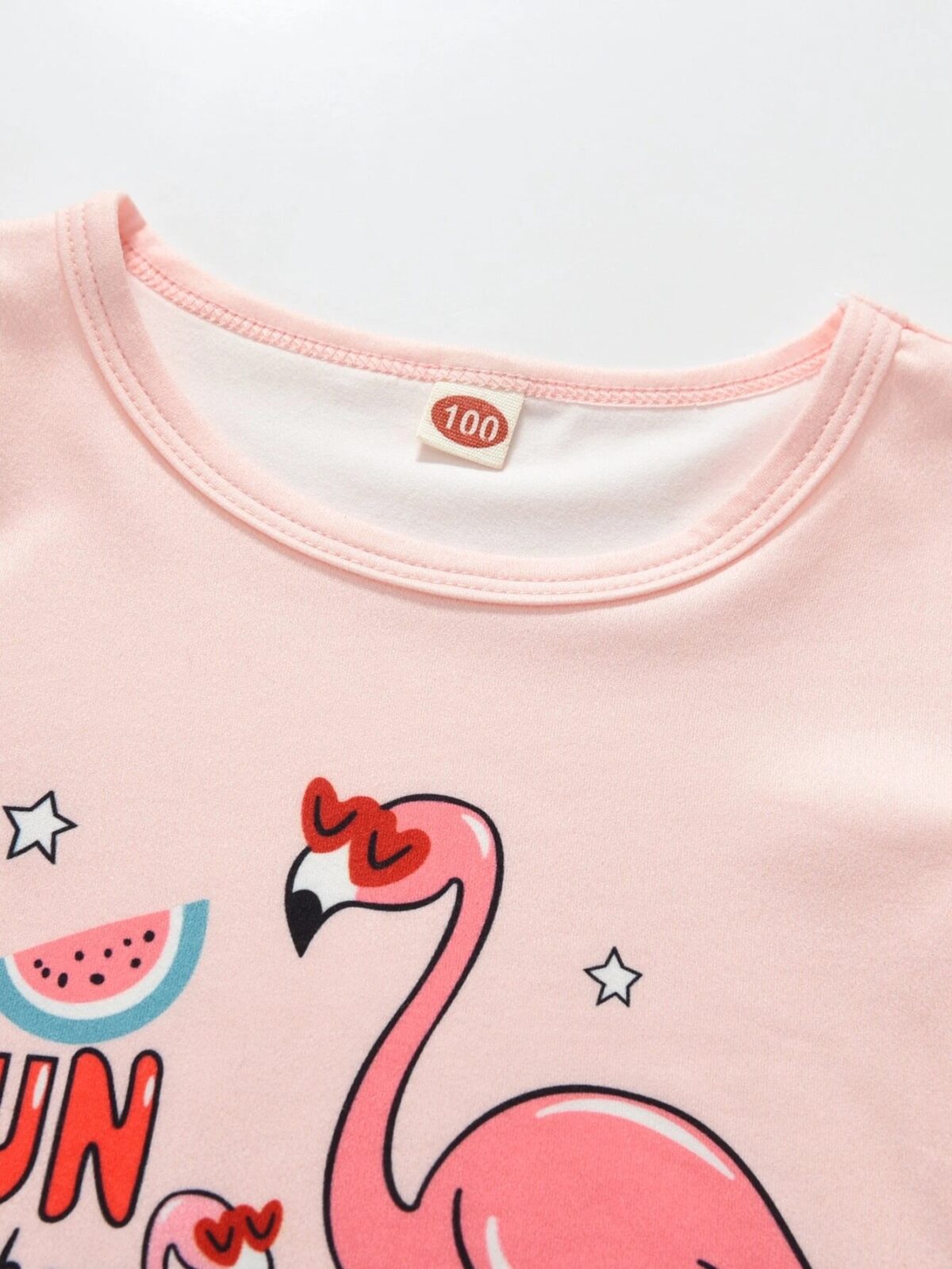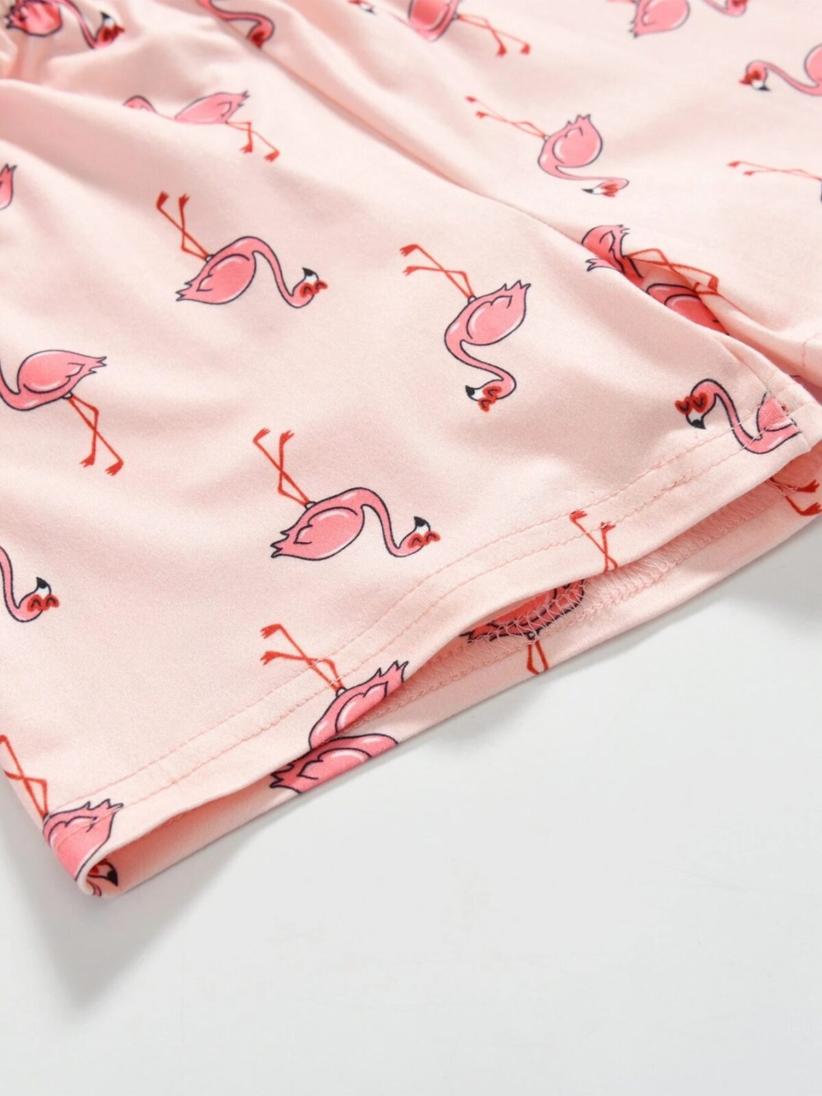 Adorable flamingo print sleep tee and shorts set, perfect for sweet dreams and cozy nights.