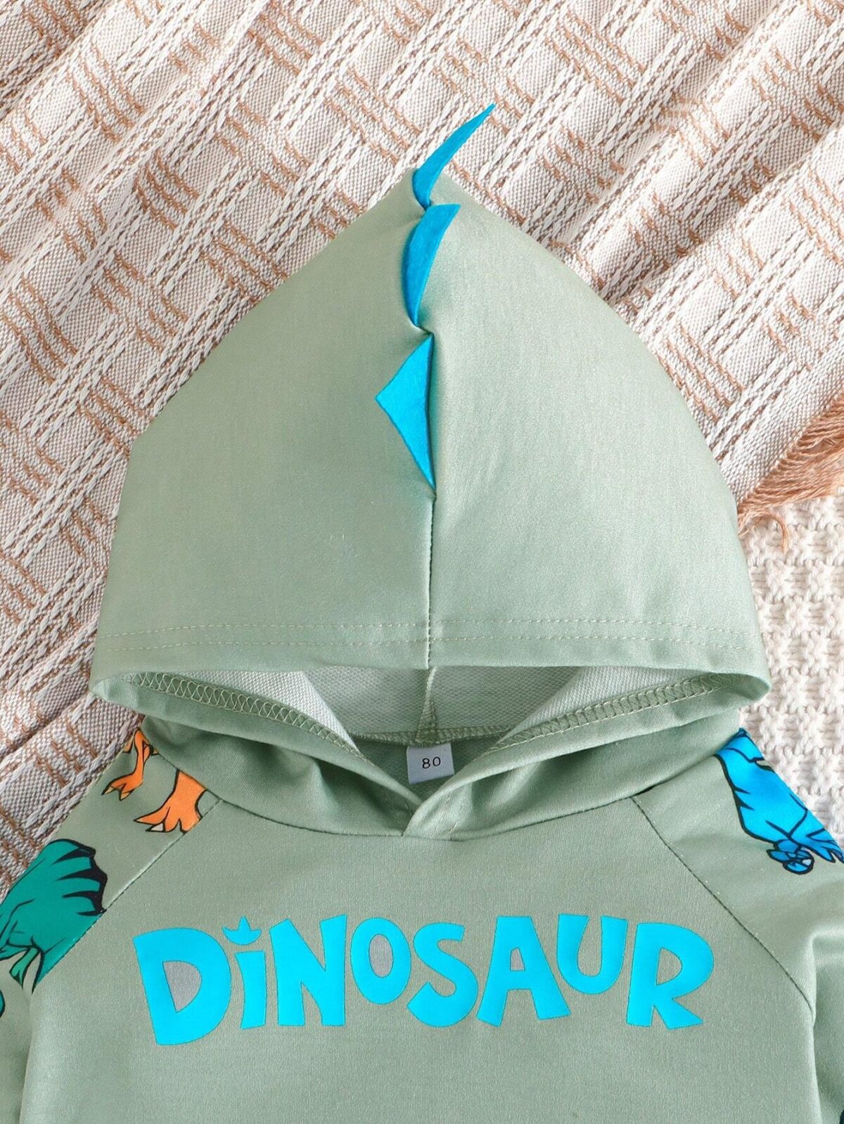Letter and Dinosaur Print Hoodie And Sweatpants