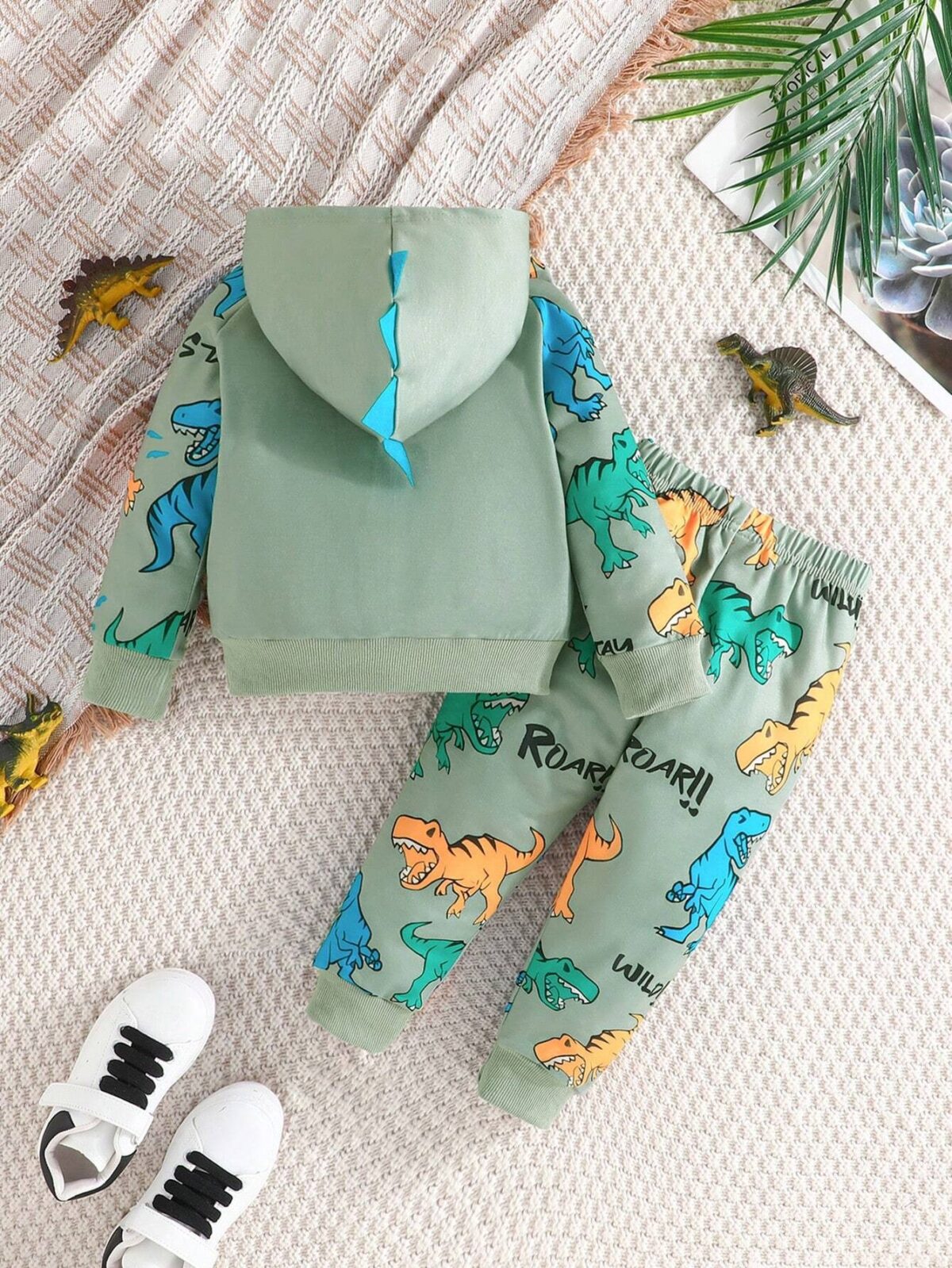 Roar into style with this fun dinosaur print hoodie and sweatpants set! Perfect for little dino lovers.