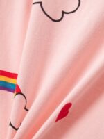 Drift off into a world of dreams with this charming 2-piece pajama set. The set includes a short sleeve top and matching shorts, both adorned with delightful prints of rainbows, clouds, and hearts. The vibrant and playful design adds a splash of color to bedtime, making it a favorite for little ones. Crafted from soft, breathable fabric, this pajama set ensures maximum comfort and a restful night’s sleep. The top features a relaxed fit and a round neckline, while the shorts come with an elastic waistband for easy wear. Perfect for warm nights or lounging around the house, this pajama set combines cuteness and comfort in the best way possible.