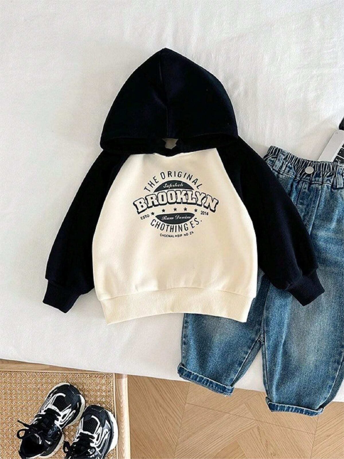 Cozy up your little one in this stylish Raglan Sleeve Hoodie with a trendy Brooklyn print, perfect for casual outings.