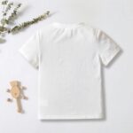 Step back in time with this playful white t-shirt designed for the littlest dinosaur enthusiasts. The shirt showcases a vibrant watercolor-style print featuring a selection of dinosaurs in a variety of colors and species, creating a dynamic and fun jurassic scene. The gentle cotton material provides a soft touch against the skin, ensuring comfort throughout the day. Ideal for sparking imagination and play, this t-shirt is a perfect addition to a toddler’s wardrobe, ready to accompany them on their prehistoric playtime adventures or a day out discovering the world.